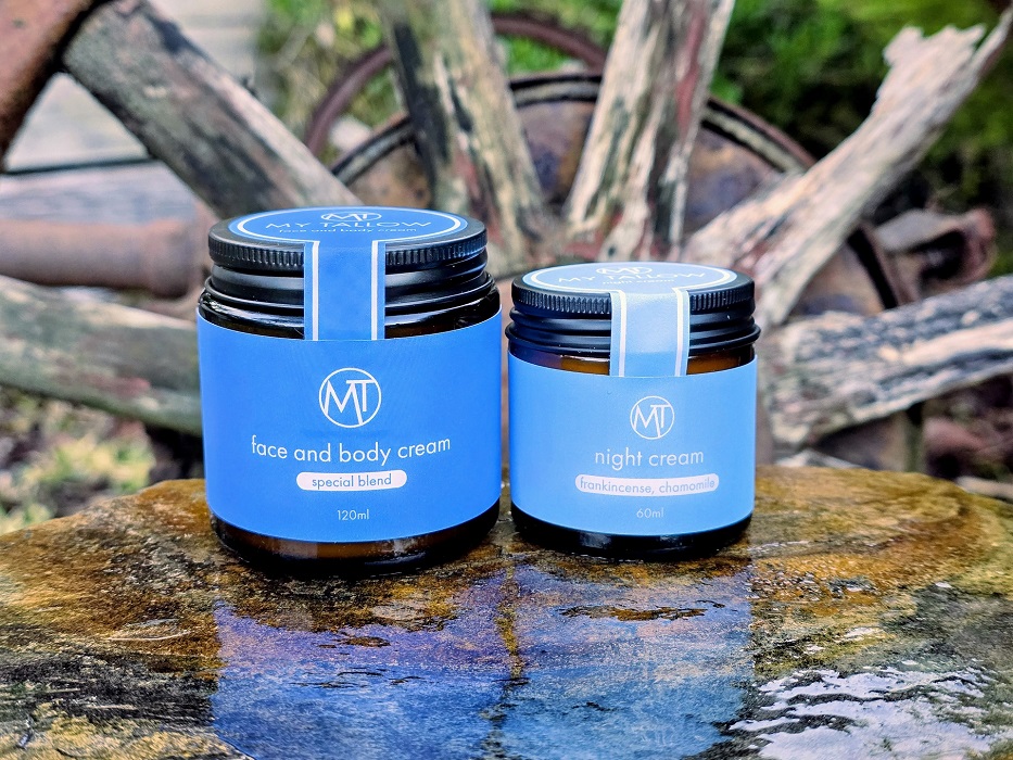 - Grass-Fed Tallow – Packed with vitamins A, D, E, and K, it calms, protects, and deeply nourishes for soft, healthy skin.